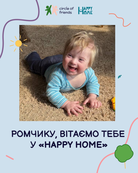Ромчик має певні труднощі зі здоровʼям, але це не заважає йому посміхатись і бути енергійним. Його очі ловлять кожну дрібницю. Він досліджує світ навколо себе, хоча ще вчиться бути спокійним поруч із людьми.
